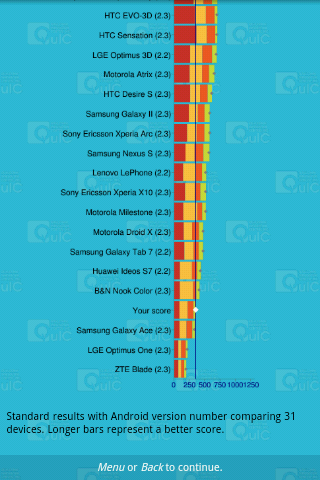 Rezultat testa AnTuTu Benchmark je 1547, Quadrant Standarx je 1063, rezultat pri Vellamo je 350.