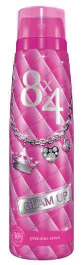8×4 Glam up je nov dezodorant, ki se je pridružil družini 8×4. 8×4 Glam up je obogaten s forumulo »non-stop fresh«, ki učinkuje proti potenju 24 ur, na koži ali oblačilih ne pušča sledi poleg tega pa je dezodorant še hipoalergenski in dermatološko preizkušen.