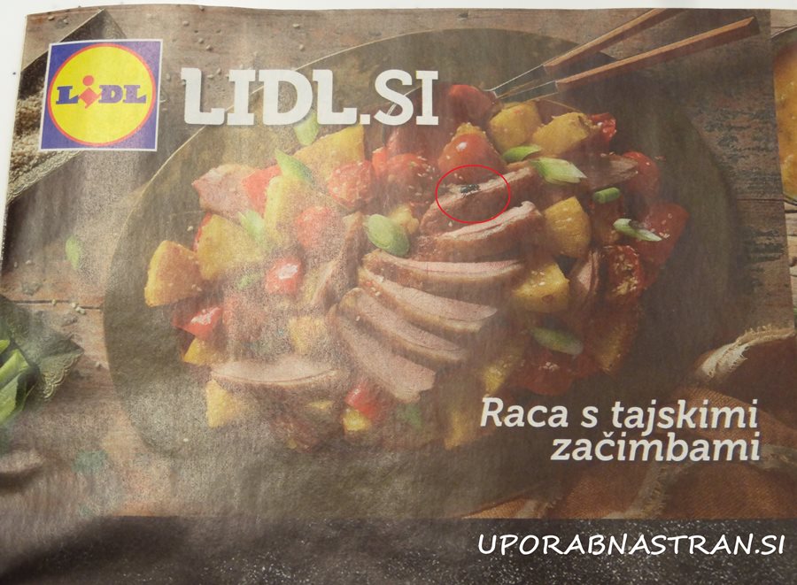 Muhi sta se namreč prikradli na naslovnico Lidlovega kataloga na sliki Raca s tajskimi začimbami, ki se nahaja v zgornjem levem kotu. Na srečo se jim podoben pripetljaj ni zgodil na 2. strani, kjer je opis jedi.