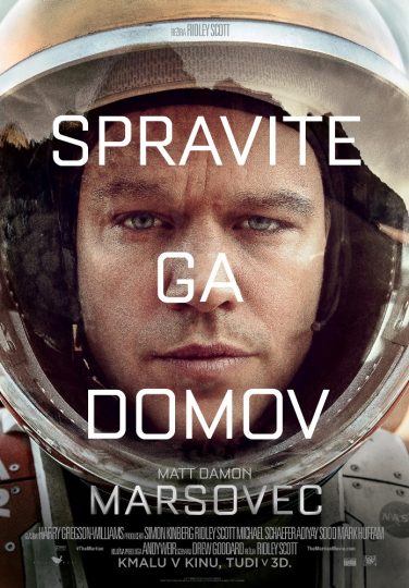 Film Marsovec (The Martian) v slovenske kino dvorane prihaja 1.10.2015. Posdka misije na MARS je prepričana, da je eden izmed njihovih astronavtov, Mark Watney (Matt Damon), podlegel hudi nevihti, zato ga pusti na rdečem planetu in se brez njega vrne na Zemljo. Pa vendar Watney preživi in tako ostane sam na neusmiljenem planetu 225.308.160 kilometrov proč.