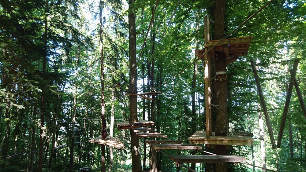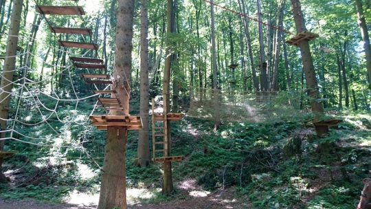 Tako obiskovalci sedaj lahko uživajo na petih plezalnih poteh in 80-ih elementih. Lani so dodali Bivanje v krošnjah, kjer ob lepem vremenu lahko prespite 10m visoko. Poleg travniške večerje pripravijo tudi ležišče (platforma na drevesu ali viseča postelja) na izbranem drevesu (smreka, hrast ali jesen, oreh, gaber ali bukev).