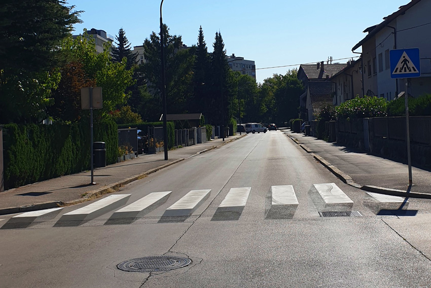 3D zebra je inovativna rešitev za umirjanje prometa na prehodu za pešce. Prvo 3D zebro so postavili v Velenju, nato je sledila še ena na Ptuju. Kot enega od trajnih ukrepov letošnjega Evropskega tedna mobilnosti pa so 3D zebro postavili v Ljubljani. 3D zebro so postavili na križišču Derčeve ulice in Pavšičeve ulice v bližini Osnovne šole Riharda Jakopiča.
