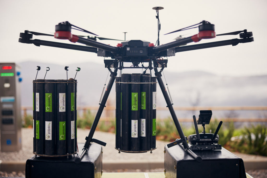 Zavod za gozdove Slovenije je v sklopu Načrta sanacije gozdov, poškodovanih v požaru Goriški Kras povabil k sodelovanju vrsto organizacij, tudi takšne iz znanstveno raziskovalne sfere. Eden izmed sodelujočih je tudi Projekt O2 iz Hrvaške, ki se ukvarja s sejanjem semenskih kroglic z droni. Na tak način lahko dostopajo težje dostopne terene, na katerih ostali načini obnove gozda niso mogoči. S pomočjo družbe Telemach Slovenija, ki je kot donator priskočil na pomoč pri financiranju novega načina obnove gozdov, so to metodo danes predstavili, a zaradi deževnega vremena droni žal niso mogli poleteti. Raznos kroglic s semeni bodo tako izvedli v prihodnjih dneh.