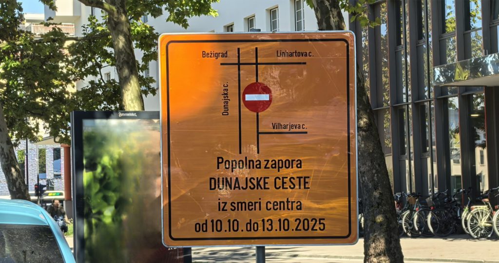Dunajska cesta bo od petka, 10.10.2025 od 7.00 do predvidoma ponedeljka, 13.10.2025 do 18.00 zaprta. Popolna zapora Dunajske ceste bo izvedena v smeri Bežigrada. Torej od križišča z Vilharjevo cesto do križišča z Linhartovo cesto. V smeri proti centru pa bo Dunajska cesta odprta normalno, saj bo promet potekal nemoteno po dveh prometnih pasovih.