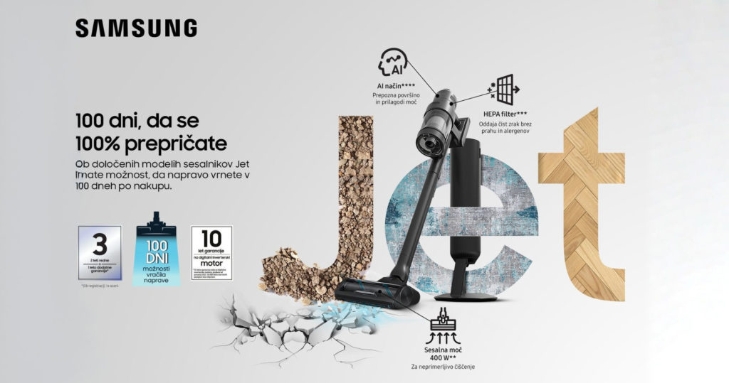 100 dni testiraj Samsung pokončni sesalec, če ti ni všeč, ti vrnejo kupnino