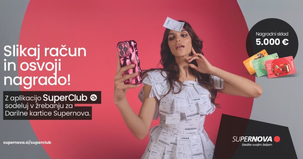 Aplikacija Supernova SuperClub je lojalnostna aplikacija v sklopu katere kupci v nakupovalnih centrih Supernova po Sloveniji zbirajo točke zvestobe. Te pa nato preprosto koristijo za ekskluzivne ugodnosti, darila in tudi Darilne kartice Supernova. Ob lansiranju aplikacije so pri Supernovi pripravili tudi veliko nagradno igro, ki poteka od 6.10.2025 do 2.11.2025. Kupci z enim samim slikanim računom sodelujejo v žrebu za darilne kartice Supernova v skupni vrednosti 5.000€.