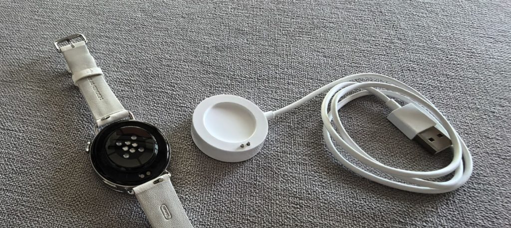 Polnjenje poteka prek magnetnega 2-pin priključka, ki se trdno pritrdi na zadnji del ohišja. Sistem je stabilen, povezava se ne prekinja, tudi če uro med polnjenjem rahlo premaknemo. Žal pa tukaj prihaja kritika, saj Xiaomi pri urah še vedno ni omogočil Qi brezžičnega polnjenja, ki ga konkurenca že dolgo ponuja. Ura se od 0 do 100 % napolni v približno 60 minuta. Kratek 15-minutni priklop že zadostuje za en dan uporabe. To pomeni, da uporabnik uro lahko hitro napolni tudi med jutranjim pripravljanjem na delo ali telovadbo. Xiaomi je polnilnik zasnoval minimalistično in prenosno, kar je priročno za potovanja. Kljub temu bi bila podpora brezžičnemu standardu Qi v prihodnjih generacijah dobrodošla, saj bi omogočila večjo fleksibilnost pri polnjenju, zlasti za uporabnike, ki že uporabljajo brezžične polnilce za telefone in slušalke.