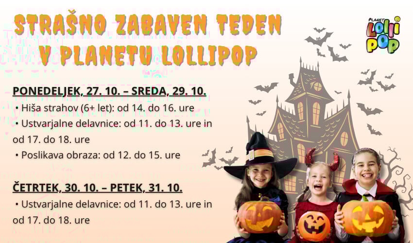 ALEJA ne nagovarja le ljubiteljev mode, temveč tudi družine, ki v času krompirjevih počitnic iščejo zabavne vsebine za otroke. Od 27. do 31. oktobra bo v igralnici Planet Lollipop potekal Halloween program z ustvarjalnimi delavnicami, hišo strahov, poslikavo obraza in drobnimi presenečenji.
