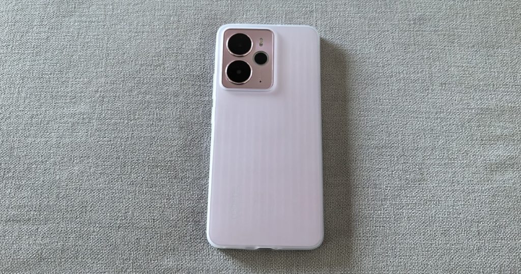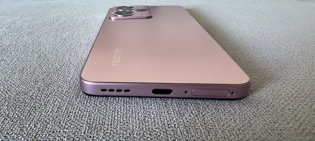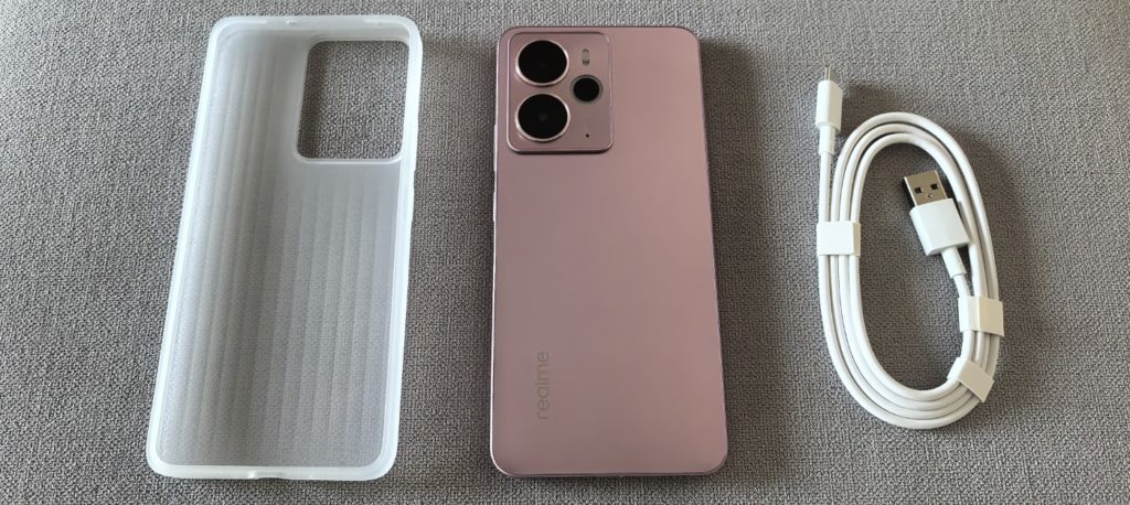 Telefon je tanek, s 7,97 mm debeline in težo okoli 196 gramov, kar ga naredi presenetljivo prijetnega za vsakodnevno uporabo. Zadnja stranica je sicer plastična, vendar dobro obdelana in odporna proti prstnim odtisom, zato telefon ohranja eleganten videz tudi po večurni uporabi. V škatli je priložen tudi zaščitni ovitek. Ta je delno transparenten z belimi odtenki. Hkrati pa je zanimivo tudi to, da se je Realme odločil za valovito teksturo ovitka. Posebej velja izpostaviti uradno vodoodpornost in odpornost na prah s certifikatom IP69/68/66, kar je v tem cenovnem razredu prava redkost. Realme je tokrat poskrbel, da telefon deluje vizualno sveže, a obenem dovolj umirjeno, da nagovori tudi uporabnike, ki ne iščejo le drznega videza, temveč napravo, ki deluje kakovostno in zanesljivo.