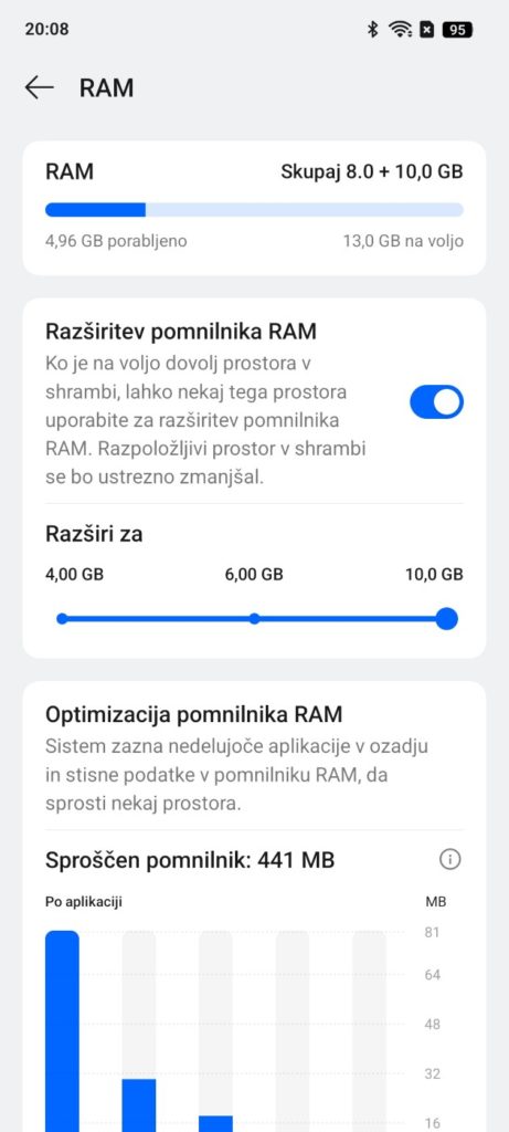 V vsakodnevni uporabi Realme 14 5G deluje kot naprava, ki jo odlikuje presenetljiva zanesljivost. Hitrost odziva pri tipkanju, pomikanju po družbenih omrežjih in odpiranju aplikacij je primerljiva z dražjimi telefoni, kar potrjuje dobro optimizacijo sistema Realme UI 6.0. Uporabniški vmesnik je enostaven in pregleden, z možnostjo prilagajanja postavitve ikon, tem in animacij. Preklapljanje med več aplikacijami poteka brez zatikanja, tudi pri več odprtih procesih hkrati, kar je posledica kombinacije učinkovitega čipa in velike količine RAM-a. Vmesnik omogoča tudi uporabne funkcije, kot so razdeljeni zaslon, plavajoča okna in pametno upravljanje gest, kar poveča produktivnost in udobje pri uporabi. Posebno dobrodošla je Realmejeva optimizacija za igre – GT Mode, ki poveča odzivnost dotika in delovanje procesorja, omogoča tekoče igranje tudi zahtevnejših naslovov brez večjih upadov hitrosti. Naprava se med igranjem segreje minimalno, kar potrjuje učinkovit hladilni sistem s parno komoro. Kljub nekaj prednameščenim aplikacijam, ki jih je treba ročno odstraniti, splošna izkušnja ostaja pozitivna. Realme 14 5G daje občutek telefona, ki je pripravljen na večletno uporabo in zmore zadovoljiti tako vsakodnevne potrebe kot tudi občasno zahtevnejše scenarije, kar ga loči od številnih naprav v tem cenovnem segmentu.