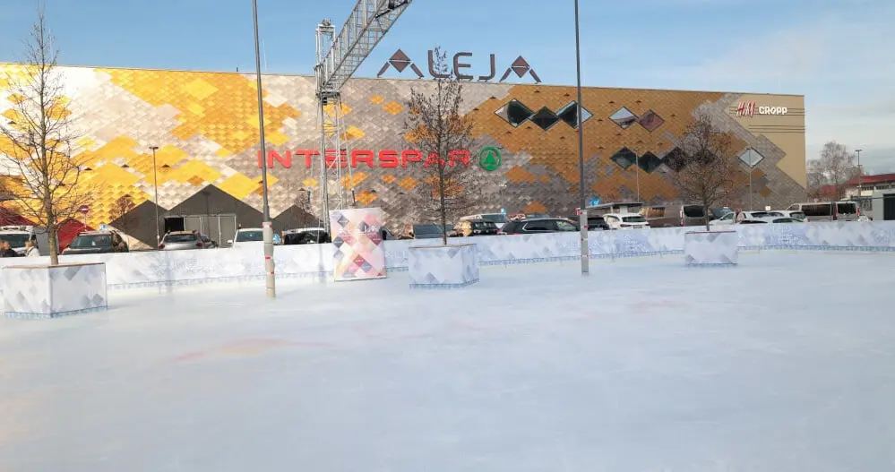 Aleja drsališče 2025 2026 600 m2 veliko drsališče tokrat na novi lokaciji pred Alejo, cenik drsanja ostaja enak kot lani / delovni čas