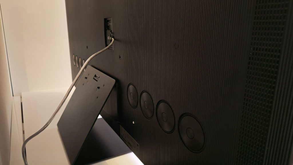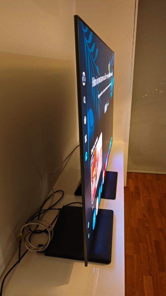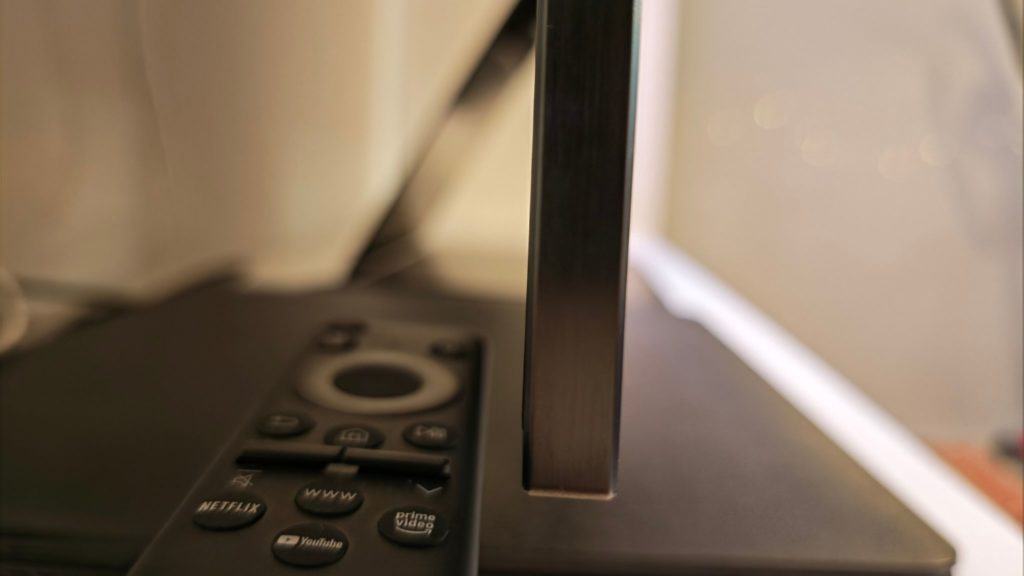 Celostno gledano S95F deluje kot zelo premišljeno oblikovan izdelek višjega razreda. Tanek profil ne daje vtisa krhkosti, temveč poudarja tehnološko zrelost konstrukcije. Oblikovno televizija tako ne poskuša biti vpadljiva ali ikonična, temveč nevtralna, kar je pri televizorju tega razreda prednost. V praksi se S95F brez težav vključi v različne bivalne sloge in deluje kot diskreten nosilec vrhunske slike, ne kot samostojen oblikovni element, ki bi zahteval prilagajanje prostora.