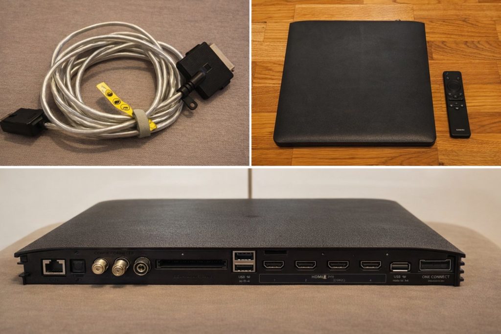Kot je že stalnica pri Samsungovih premium televizijah, tudi OLED S95F uporablja zunanjo povezovalno enoto One Connect Box. To pomeni, da je vsa pamet povezana s povezovanjem v zunanji enoti, ki se prek posebnega kabla poveže s televizijo. One Connect Box ponuja štiri HDMI 2.1 vhodi, ki podpirajo 4K pri do 165 Hz, eARC/ARC, VRR, ALLM ter napredno gaming povezljivost. Pozabili niso niti na Ethernet (LAN) za žično omrežno povezavo in optical audio out ter USB-A ter TV in satelitske priključke.