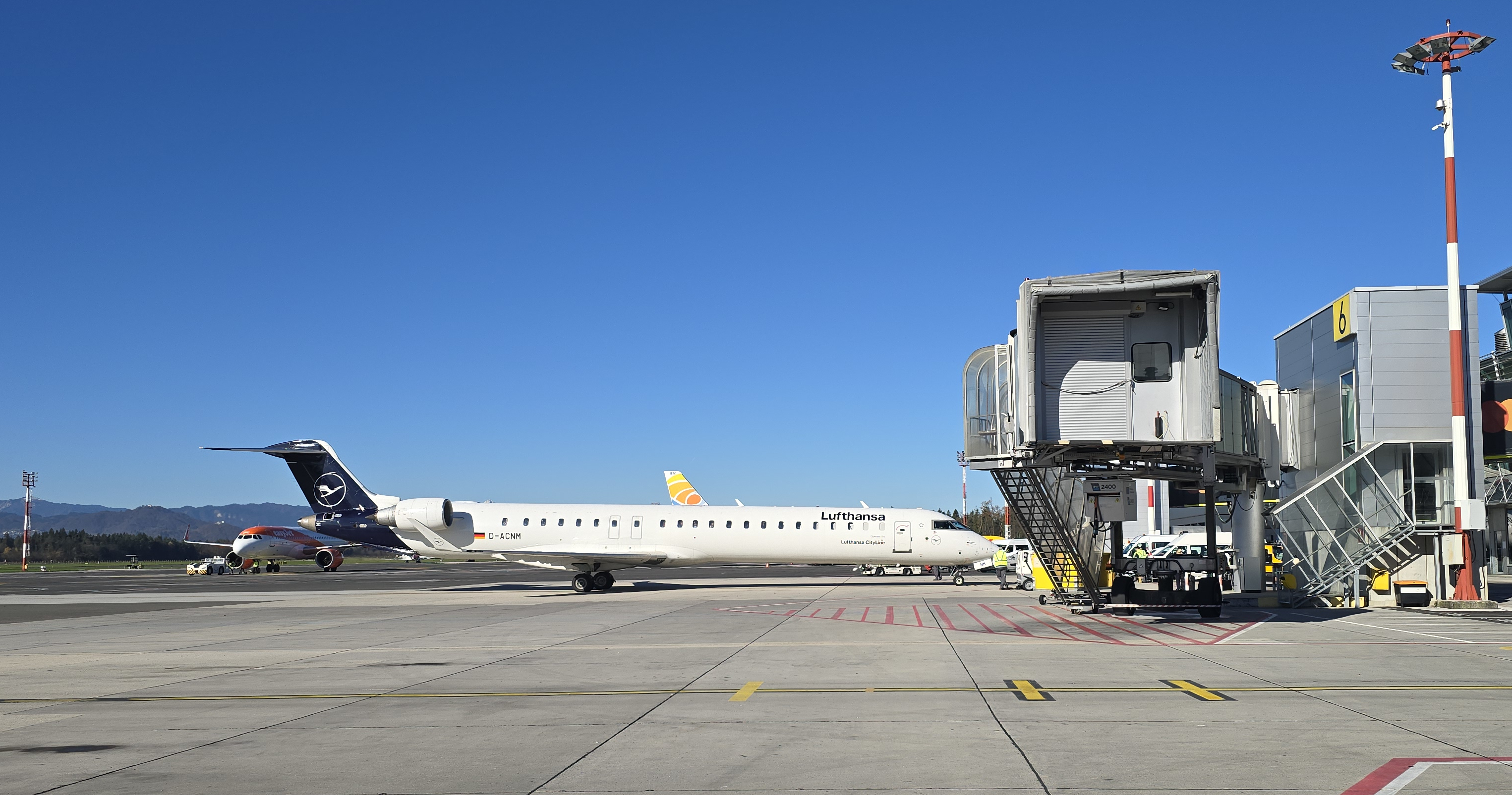 Lufthansa CityLine je bil feeder za Lufthanso. Lete so izvajali tako na liniji Ljubljana – Frankfurt kot Ljubljana – München. Na začetku praktično v celoti, zadnje čase pa vedno manj. Poleg družbe Air Dolomiti, lete zdaj vedno pogosteje opravlja tudi Lufthansa sama. Prav slednje kombinacije bomo še naprej deležni na Brniku. V praksi to večinoma pomeni Embraer 190 in Embraer 195 od družbe Air Dolomite in Airbus A319 od Lufthanse. Čeprav je možno, da bo zaradi operativnih razlogov uporabljeno kakšno drugo letalo.
